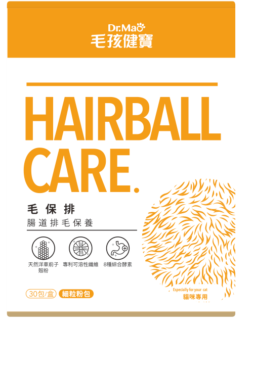 貓咪天生會用舌頭梳理貓毛,所以常常把貓毛吞下肚,如果貓毛沒有隨者糞便排出,可能會造成嘔吐、食慾不振及便秘等「毛球症」,食用毛保排腸道排毛保養顆粒粉,可以幫助腸道蠕動,排出貓毛