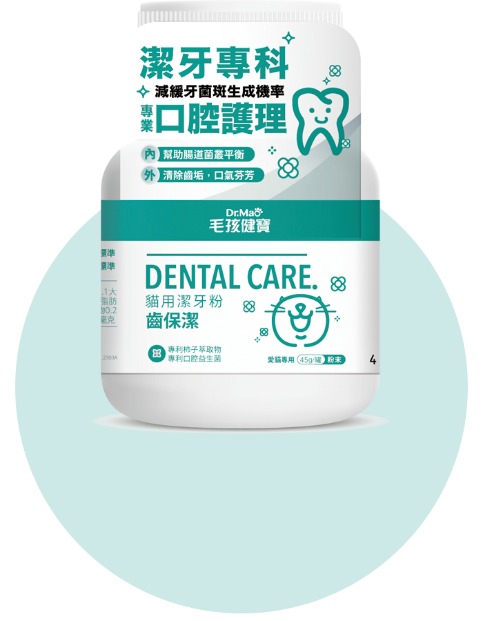 牙結石的累積會造成貓咪牙周病,引起口臭、口腔發炎,甚至是全身性的感染。專利益生菌配方搭配柿子萃取物,強效預防口臭,包持牙齒健康、口氣清新!